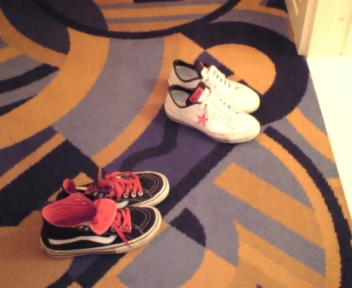 ステキな部屋に夢中で脱ぎ捨てられた靴たちの図