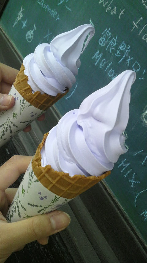 ラベンダーソフトをほおばり、ラベンダーラムネを飲んで